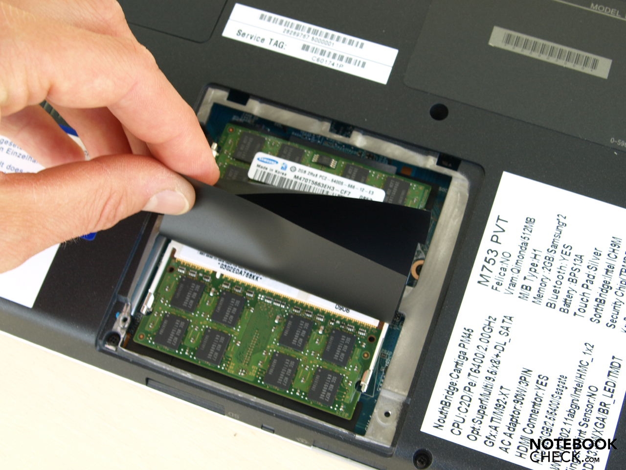 Zur Leistung des Gesamtsystems tragen natürlich auch die Hauptspeicherausstattung und die Massenspeicherausstattung bei. Mit einer Gesamthauptspeicherkapazität von vier Gigabyte RAM, bieten das System gleichzeitig auch die maximale von einem 32-Bit Betriebssystem addressierbare RAM Kapazität. Davon stehen den Anwendungen unter Windows Vista Home Premium 32-Bit allerdings nur knapp drei Gigabyte zur Verfügung. Der Rest wird von Betriebssystem selbst und für Memory Mapped IO reserviert. Sollte man mit dem Gedanken spielen, dieses Gerät auf bis zu 8 Gigabyte RAM aufrüsten zu wollen, ist jedenfalls ein 64 Bit Betriebssystem nötig. Damit würde man auch die maximale vom Mainboard unterstützte Kapazität erreichen. Aufrüsten ist aufgrund einfach zugänglicher Wartungsöffnungen ein Kinderspiel, allerdings wird zumindest eines der verbauten Zwei-Gigabyte-Module obsolet.