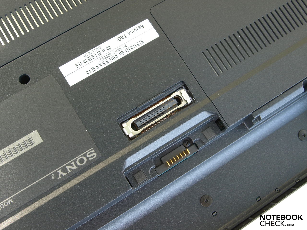Erfreulicherweise findet sich an der Unterseite auch einen Docking Port. Damit kann das Notebook ohne lästiges Kabel an- und abstecken leicht in eine existierende Arbeitsumgebung eingebunden und wieder entfernt werden. Die um satte 199.- Euro optional erhältliche Dockingstation (Modellnummer: VGPPRSR1.CE) erweitert den Schnittstellenumfang um 3 USB-2.0 Anschlüsse, VGA, DVI-D und einen Gigabit Ethernet Anschluss.