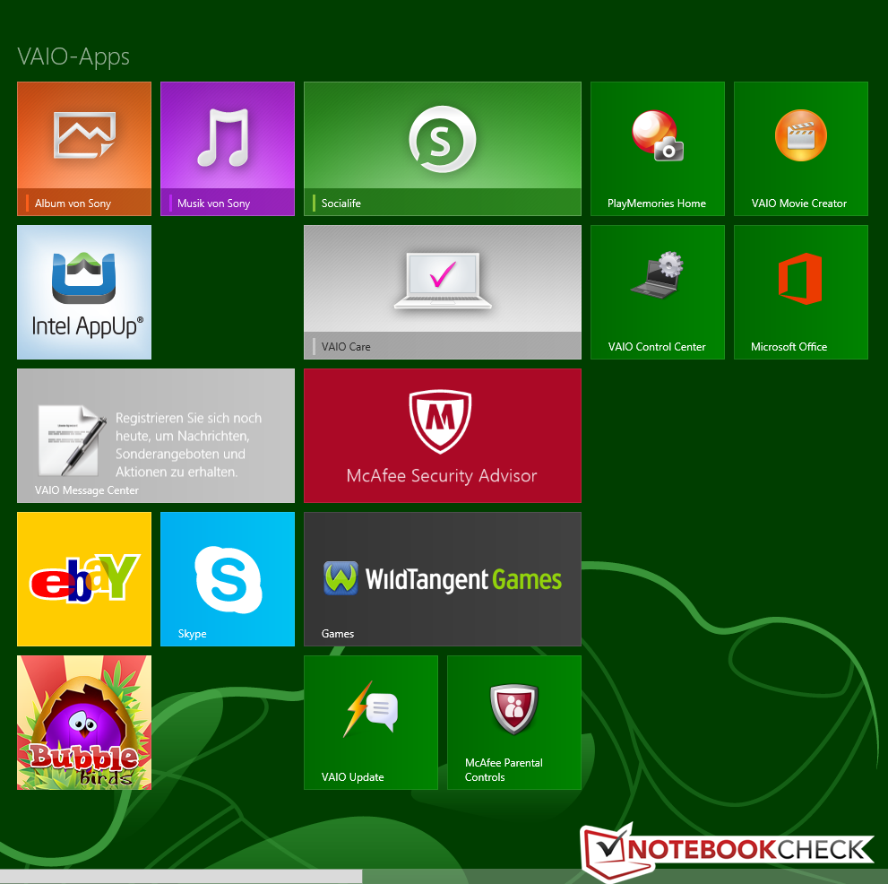 Als weitere Eingabemöglichkeit dient ein Touchscreen. Er reagiert prompt auf Eingaben und ist weder zu empfindlich noch zu unempfindlich eingestellt. Aber auch für das Vaio gilt, was für alle anderen normalen Notebooks mit Touchscreen gilt: Der Touchscreen erlaubt keine dauerhafte komfortable Nutzung, da der Arm ständig in der Luft gehalten werden muss. Wir sehen ihn mehr als Spielerei. Jeder Nutzer muss aber für sich entscheiden, ob der Touchscreen sinnvoll ist und den Aufpreis wert ist.