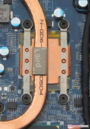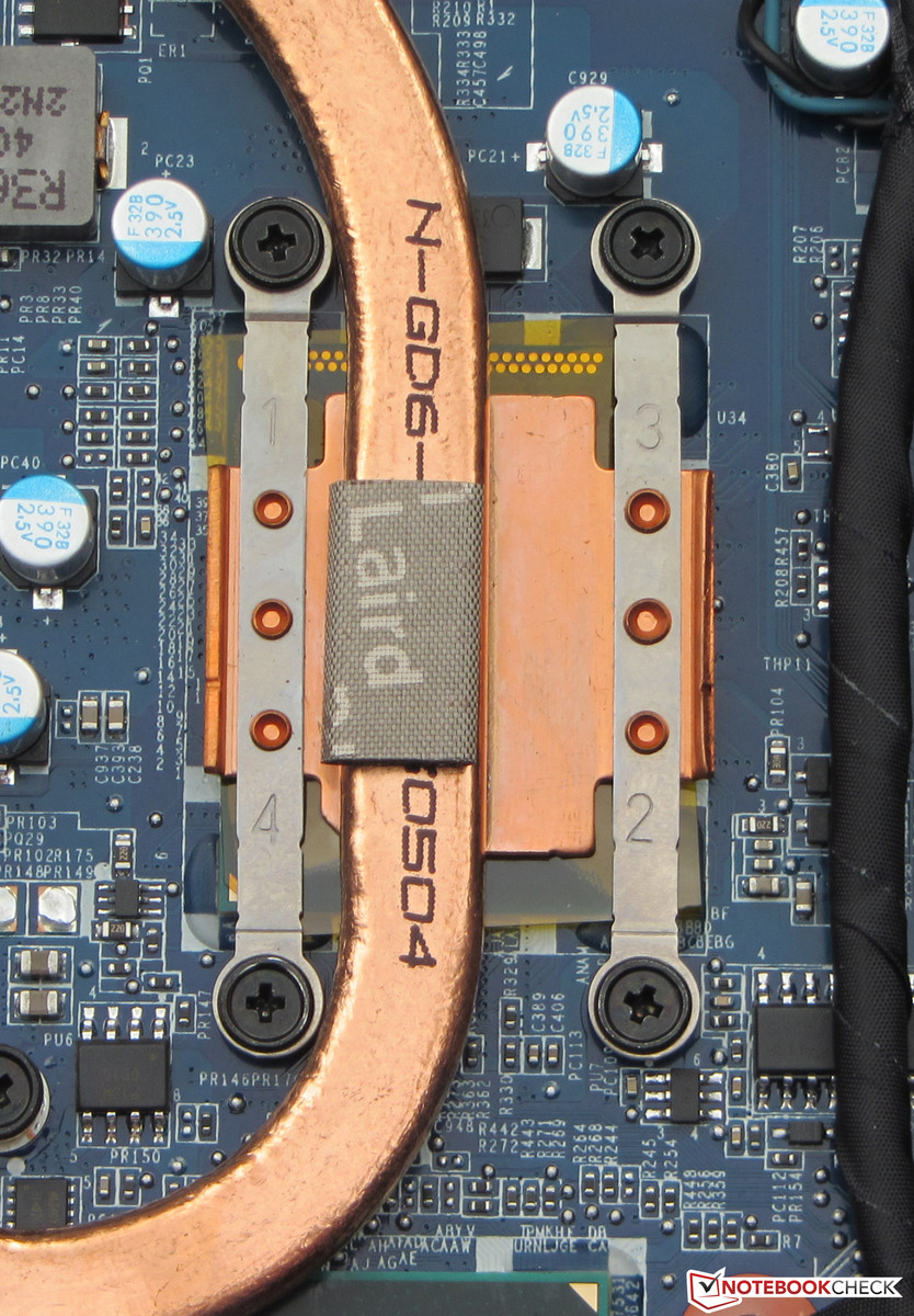 Direkt nach dem Stresstest haben wir den 3D Mark 2006 Benchmark erneut ausgeführt. Das Ergebnis fällt mit 7348 Punkten (CPU: 2541 Punkte) deutlich niedriger aus, als im kühlen Notebookzustand (8924 Punkte; CPU: 3645 Punkte). Die CPU-Temperatur hat sich im Netzbetrieb bei etwa 70 Grad Celsius eingependelt.