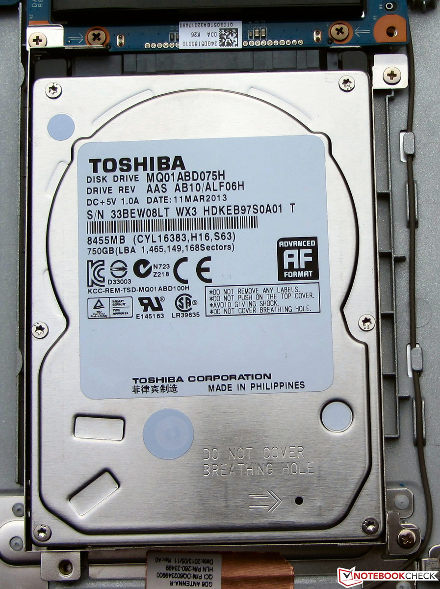 Die eigentliche Festplatte verfügt über eine Kapazität von 750 GB und arbeitet mit 5.400 Umdrehungen pro Minute. Die Hybridfestplatte arbeitet recht flott. So meldet CrystalDiskMark eine Lesegeschwindigkeit von 146,3 MB/s. Der Wert ist gut, aber nicht überragend. Wir haben bei der Kombination aus herkömmlicher Festplatte und separatem SSD-Cache in anderen Notebooks aber schon deutlich schnellere Übertragungsraten gemessen – zum Beispiel im HP Pavilion Sleekbook 15-b004sg mit 224,7 MB/s.