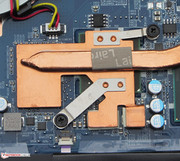 Den Stresstest (Prime95 und Furmark laufen für mindestens eine Stunde) durchläuft die CPU im Netzbetrieb in den ersten fünf Minuten mit 2,7 bis 2,8 GHz. Immer wieder wird ein Kern auf 2,2 GHz abgebremst. Anschließend arbeitet die CPU dauerhaft mit 2 GHz. Letzteres geschieht im Akkubetrieb von Beginn an. Die GPU werkelt im Netz- und im Akkubetrieb mit 575 MHz. Beide Komponenten bleiben weit unter ihren Möglichkeiten. Das Kühlsystem des Rechners scheint nicht auszureichen, damit beide Rechenkerne gleichzeitig mit Volldampf arbeiten können. Ihre Maximalgeschwindigkeiten erreichen die beiden Komponenten nur separat.