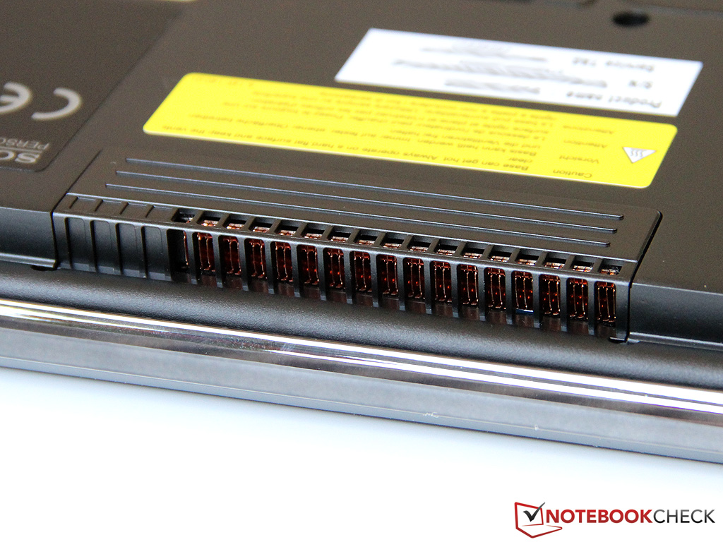 Unter Volllast konzentriert sich die Hitze im Bereich des Luftauslasses, der sich mittig an der Rückseite des Notebooks befindet. Uns gefällt diese Lösung ausgesprochen gut, denn so wird die Abwärme vom Nutzer bestmöglich ferngehalten. Selbst in unserem Stresstest bleiben die Handballenauflagen und weite Teile der Tastatur vergleichsweise kühl - selbst eine Nutzung auf dem Schoß ist weiterhin möglich.