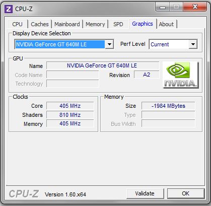 Der Nvidia GeForce GT 640M LE-Grafikchip kann auf zwei Gigabyte eigenen Arbeitsspeicher zurückgreifen. Bei dieser GPU handelt es um eine langsamer getaktete Variante des GeForce GT 640M-Grafikchips. Der Basistakt des GT 640M LE-Chips liegt bei 500 MHz, der des GT 640M-Chips bei 625 MHz. Der GeForce GT 640M LE-Chip kann bis auf eine Geschwindigkeit von 570 MHz übertaktet werden. Die DirectX 11.1-fähige GPU ist ein Vertreter der Grafikchip-Mittelklasse. Der zweite Grafikchip - "Intel HD Graphics 4000"-Chip - steckt im Gehäuse des Hauptprozessors. Intel aktuelles Topmodell im Bereich Grafikchip unterstützt die DirectX-Version 11 und kann mit Arbeitsgeschwindigkeiten zwischen 350 MHz und 1.200 MHz betrieben werden.