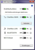 Auch Microsoft Office 2010 Starter, Adobe Acrobat X Standard und Skype findet man auf der Festplatte. Daneben hat Sony noch allerlei eigene Tools installiert, von denen einige sehr nützlich sind. So beispielsweise "Vaio Smart Network". Mit diesem Tool lassen sich schnell und einfach alle Funkmodule ein- und ausschalten. In die Kategorie "Nett, aber nicht notwendig" lässt sich das Tool "Vaio Gesture Control" einordnen. Dieses ermöglicht die Steuerung des Internet Explorers oder des Mediaplayers durch Handgesten. Zur Erkennung der Gesten wird die integrierte Webcam genutzt.