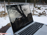 Die spiegelnde Oberfläche disqualifiziert das Touch Vaio für den Einsatz auf der Terrasse. Selbst bei Bewölkung reflektiert der Glare Type die Umgebung so stark (trotz 230 cd/m² Akkubetrieb), dass an ein angenehmes Arbeiten nicht zu denken ist. Dass im Akkubetrieb die Helligkeit auf 230 cd/m² (Mitte) gedrosselt wird, ist vor diesem Eindruck unverständlich. Viel geholfen hätten 283 cd/m² im Tageslicht jedoch auch nicht.