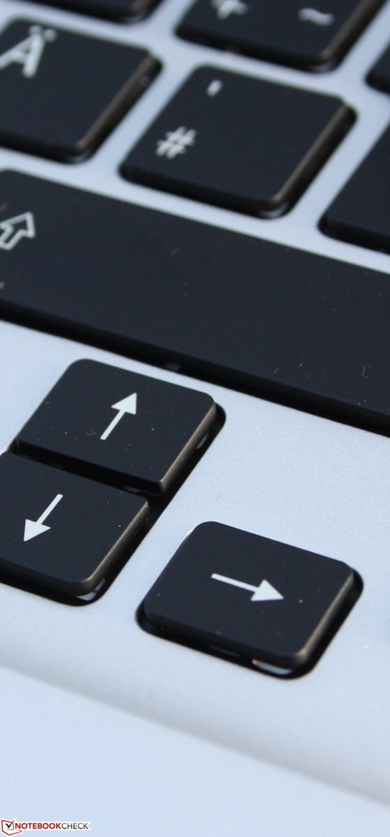 Das großzügige Layout mit der breiten Shift-Taste, dem großen Enter, den eindeutig positionierten Strg- und Entf-Tasten bietet auch großen Händen viel Platz. Die etwas verkleinerten Richtungstasten sind deutlich vom Rest abgesetzt, weshalb sie blind ertastet werden können. Finger finden sich trotz der planen Tastenoberfläche schnell zurecht, und die Trefferquote beim Blindschreiben ist hoch. Bei Dunkelheit oder dämmrigem Licht hilft die Tastenbeleuchtung (ohne Stufen, nur On/Off). Um sie dauerhaft aus zu schalten, muss immer erst das Vaio Control Center aufgerufen werden. Es gibt keine Fn-Taste dafür.
