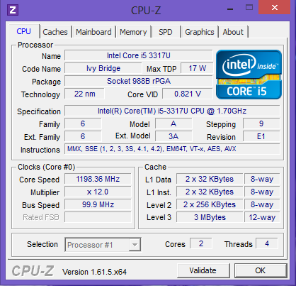 Der Intel Core i5-3317U-Prozessor hat eine TDP von 17 Watt und gehört zu der Kategorie der Ultra-Low-Voltage-CPUs. Er bietet somit eine deutlich geringere Leistungsaufnahme als Standard-Prozessoren und produziert dadurch auch wesentlich weniger Abwärme. Trotz dieser Spezialisierung auf Genügsamkeit werden die aktuellen Technologien wie Turbo Boost und Hyperthreading geboten, die beim jeweiligen Einsatzzweck die bestmögliche Performance herauskitzeln sollen.