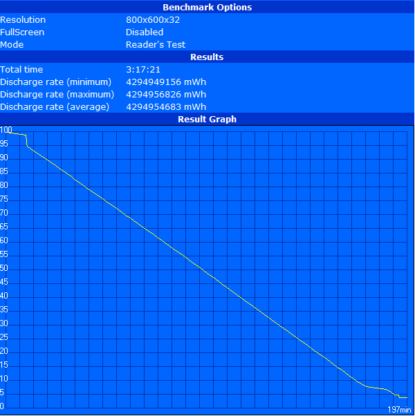 Beim Battery Eater Readers Test (minimale Displayhelligkeit, Energiesparmodus, Flugzeugmodus) erreicht das Testgerät etwas mehr als 3 Stunden Netzunabhängigkeit. Wegen dem dann relativ dunklen Display und den ausgeschalteten Funkmodulen, ist das aber vor allem für die angestrebte Zielgruppe kein realistischer Wert. Weiterhin im Energiesparmodus, dafür aber mit angepasster Displayhelligkeit (etwa 150 cd/m²) und eingeschalteten Funkmodulen reduziert sich die Laufzeit beim Internet-Surfen schon recht rapide auf gut 2 Stunden. Wer das Vaio Tap auch zum Fernsehen im Garten nutzen möchte, hat noch schlechtere Karten. Mit DVB-T-Empfänger, voller Displayhelligkeit und ausgeschaltetem Funk, reicht der Akku lediglich für 1:21 Stunden Laufzeit. Das Fußballspiel oder der Tatort, müssen also in jedem Fall durch eine alternative Stromversorgung abgesichert werden. Beim Battery Eater Classic Test (Maximale Helligkeit, Höchstleistungsprofil, alles an) bleiben schließlich noch 55 Minuten Akkulaufzeit übrig.