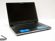 Zum Display ist außerdem noch der begrenzte Öffnungswinkel festzuhalten, das jedoch bei einem überwiegend am Schreibtisch verwendeten Gerät zu keinerlei Problemen führen sollte. Sehr interessant ist der Klappmechanismus des Notebooks ausgefallen. Obwohl die Scharniere klassisch angeschlagen sind, schiebt sich der Bildschirm beim Öffnen etwas nach vorne - eine durchaus elegante Lösung.