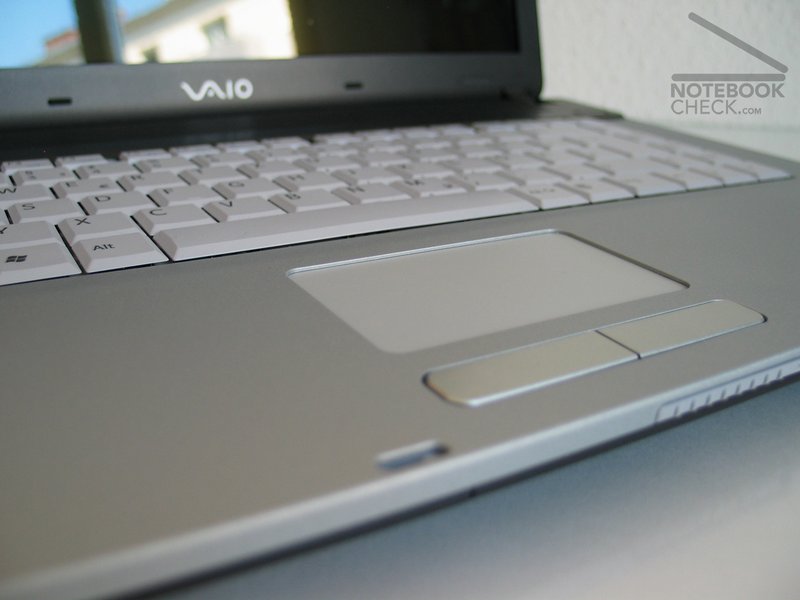 Die im Sony Vaio VGN-FS485B verbaute Notebooktastatur sitzt fest im Gehäuse und bietet (für Notebooks) angenehm grosse Tasten. Nur die Funktionstasten sind wie üblich etwas kleiner ausgeführt. Die einzelnen Tasten sind angenehm zu benutzen und bieten einen eindeutig spürbaren Druckpunkt. Das Layout der Tastatur ist als gelungen zu Bewerten - 10 Finger Schreiber finden sich schnell zu recht. Schnelltasten bietet das Sony Notebook keine, nur ein praktischer mechanischer Schiebeschalter für die WLAN Karte ziert die Front des hübschen Laptops.