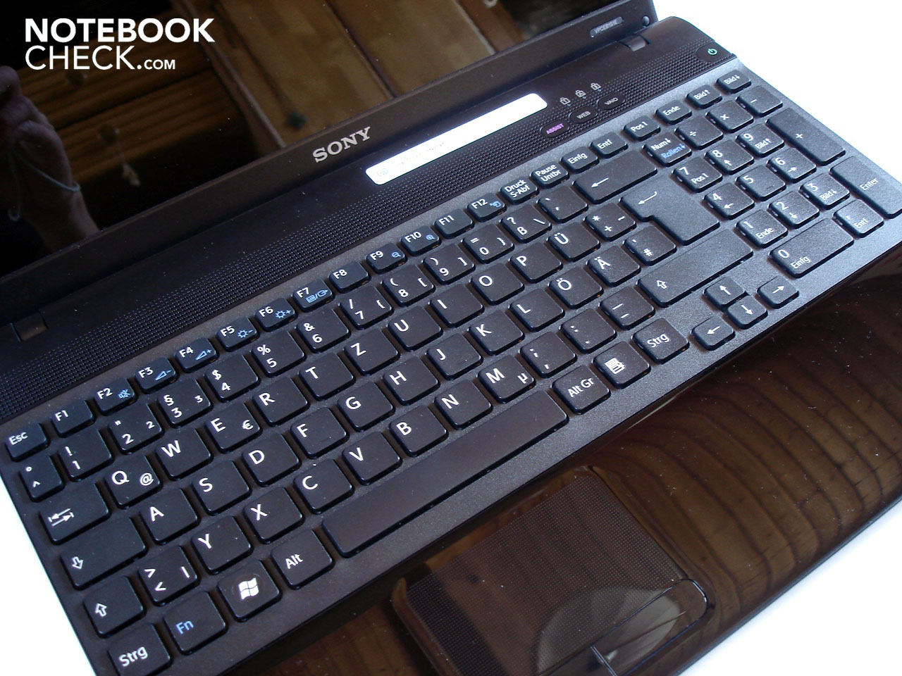 Das Design der E-Serie ist Sony durchweg gelungen, die zarte und mit feinen Rundungen versehene Formgebung empfanden wir als sehr stimmig. Von der Verarbeitung her gibt es auch nichts zu meckern, die Stabilität gibt hingegen eher Anlass zur Kritik. So lässt sich der rechte Rahmen der Tastatur deutlich durchdrücken. Ursache ist das optische Laufwerk, das sich darunter befindet. Als ebenfalls sehr instabil erwies sich der wackelige Displayrahmen. Bereits bei verhältnismäßig sanftem Druck lassen sich deutliche Bildstörungen provozieren. Des Weiteren klappert das Gehäuse bei Benutzung teils unangenehm, was den sowieso nicht gerade hochwertigen Eindruck der dünnen Kunststoffoberflächen noch verstärkt. Nicht anfreunden konnten wir uns überdies mit der hochglänzenden und damit extrem schmutzempfindlichen Handballenauflage. Nach kürzester Zeit wimmelt es nur so vor Staub und Fingerabdrücken. Wer also ein halbwegs sauberes Notebook will, muss stets ein Reinigungstuch parat haben.