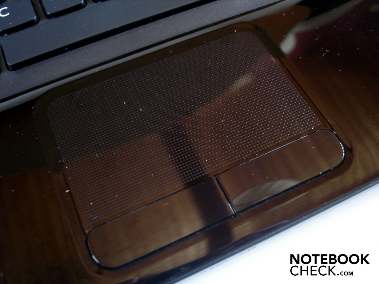 Das etwas zu weit links positionierte und in der Farbe der Handballenauflage gehaltene Touchpad verfügt über eine, durch winzige Noppen erzeugte, angeraute Struktur. Diese sorgt für ein hervorragendes sensorisches Feedback, was durch die gut wahrnehmbare Touchpadumrandung verstärkt wird. Kehrseite der Medaille sind allerdings unzureichende Gleiteigenschaften und ein leicht unangenehmes Gefühl in den Fingern. Die akzeptable Touchpadgröße stimmt hingegen wieder gewogen.
