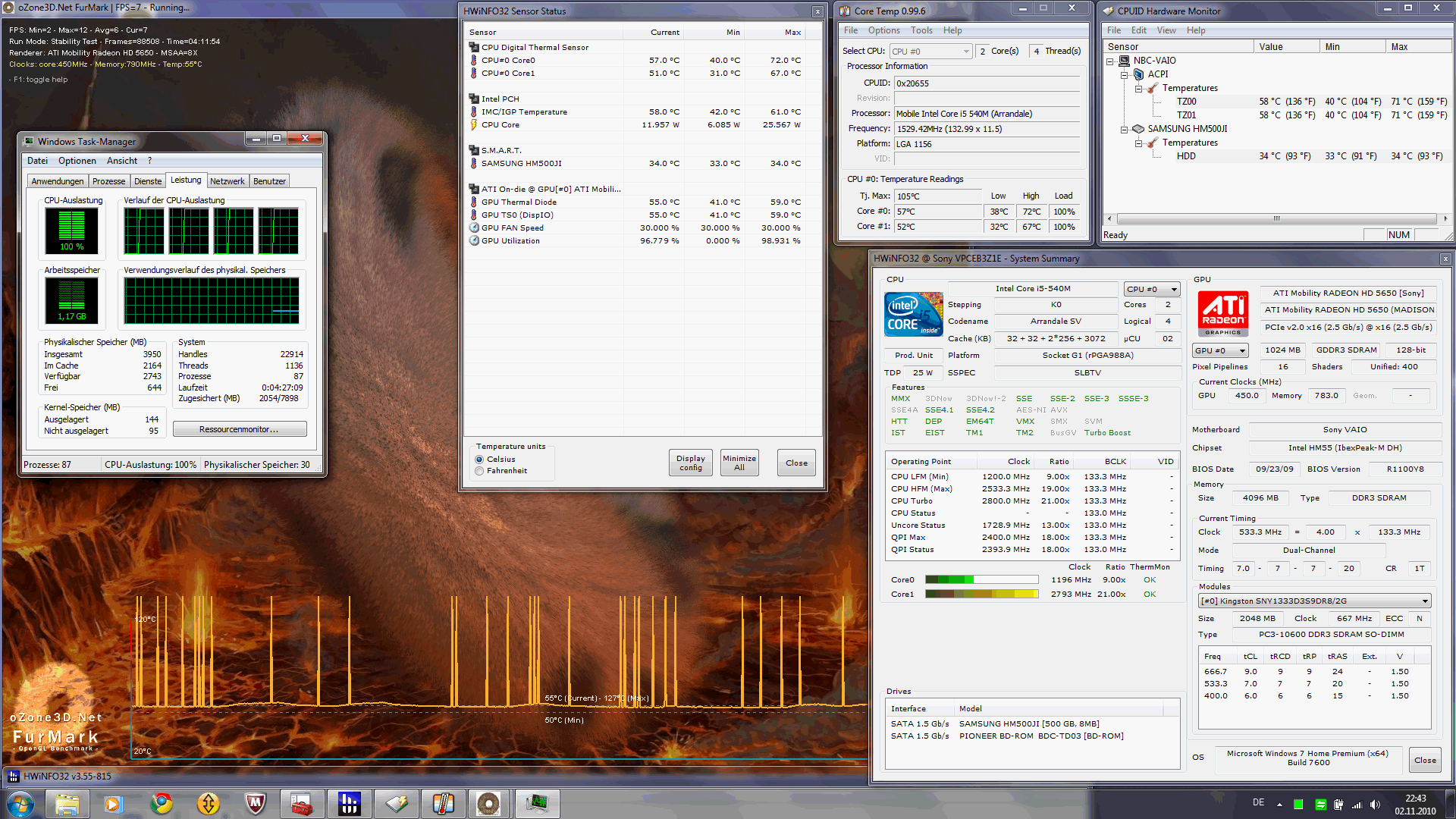 Auf Seiten der Leistung werden Unterhaltungsfreunde und Spieler mit Intel Core i5 460M (2 x 2.53 GHz) und ATI HD 5650 (450 MHz) gut bedient. Zocker werden eine Träne wegen der Heruntertaktung der GPU abdrücken. Aber das muss nicht sein, denn für aktuelle Games mit hohen Anforderungen in Full-HD hätte auch die Performance einer 550-MHz-HD-5650 bei weitem nicht gereicht.