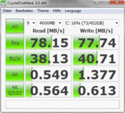 Erst schnelldrehende 7.200 rpm Festplatten bringen höhere Durchsätze von bis zu 85 MB/s, was dann in einem HDD-Score von 4.077 Punkten (HP G62-130EG) resultieren kann. Immerhin macht sich die Samsung-HDD nicht durch nervöses Klackern oder ähnliche Belästigung unbeliebt.