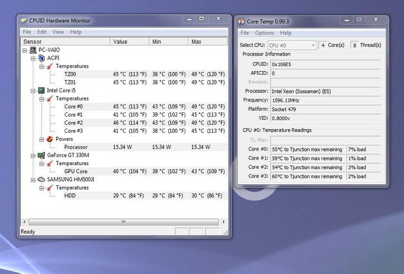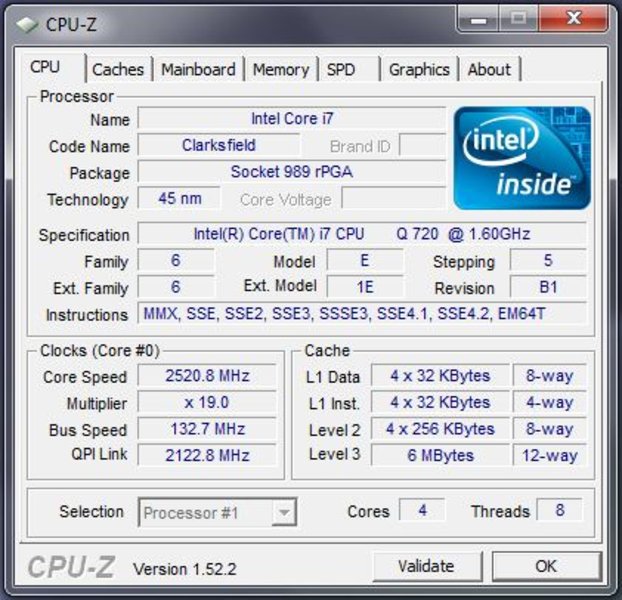 Sony bestückt seinen Vaio F11Z1E mit einem Core i7-720QM. Der 720QM besitzt 1MB Level2 Cache und 6MB Level3 Cache. Die TDP liegt bei 45 Watt. Die Clarksfield 45nm CPU besitzt vier physische Kerne mit je 1.60 GHz. Das hört sich nach sehr wenig an, ist aber lediglich als Grundtaktung zu verstehen. Der reale Takt im Betrieb liegt zwischen 1.60 und 2.80 GHz.