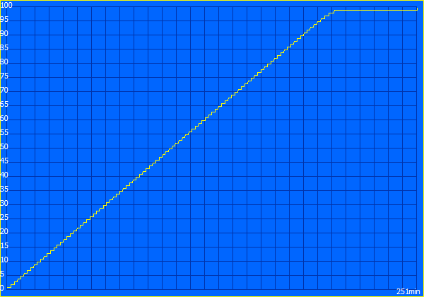 Wenn der Lüfter bei CPU/GPU-Last seine Drehzal wechselt, so macht er dass mit einer langsamen, konstanten Beschleunigung. Dadurch ist die adaptive und schnell reagierende Lüftung nicht störend (kein Aufbrausen). Dies gilt für Games im Besonderen. Grafik-Last (hier 3DMark2006) lässt den Pegel nicht lauter als 36.3 dB(A) werden. Nur im Stresstest (CPU&GPU) messen wir 46 dB(A). Bei Ende der Last-Phase erleben wir ein schnelles Abklingen von Höchstpegel auf 32.5 dB(A) binnen 30 Sekunden.