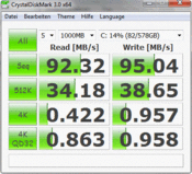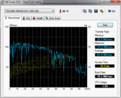 HD-Tune (84 MB/s Lesen) und Crystal Disk Mark 3.0 (92 MB/s Lesen) bescheinigen der vorliegenden Toshiba-HDD (640 GB) sehr gute Durchsätze. Der Crystal Disk Mark 3.0 liegt deutlich höher als HD-Tune, was sich durch eine andere Test-Routine erklärt. Der HDD-Score des PCMark Vantage nennt gute 4.379 Punkte (F21: 4.293), was adäquat für eine 7200 U/Min HDD ist.