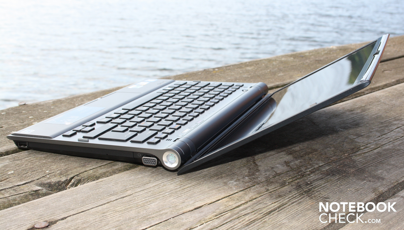 Sonys Vaio Z12M9E ist ein 1.406 Gramm leichter 13.1-Zoller mit eingebautem optischem Laufwerk. Das Gehäuse aus Kohlefaser (Carbonfaser) und Aluminium (Handballenauflage) ist für mobile Absichten optimiert und sehr verwindungssteif. So sehr wir auch versuchen mit zwei Händen und normaler Kraft das Chassis zu verbiegen, es gelingt nur marginal. Das Material ist steif, leicht und wirkt durch die harten, metallisch anmutenden Oberflächen hochwertig.