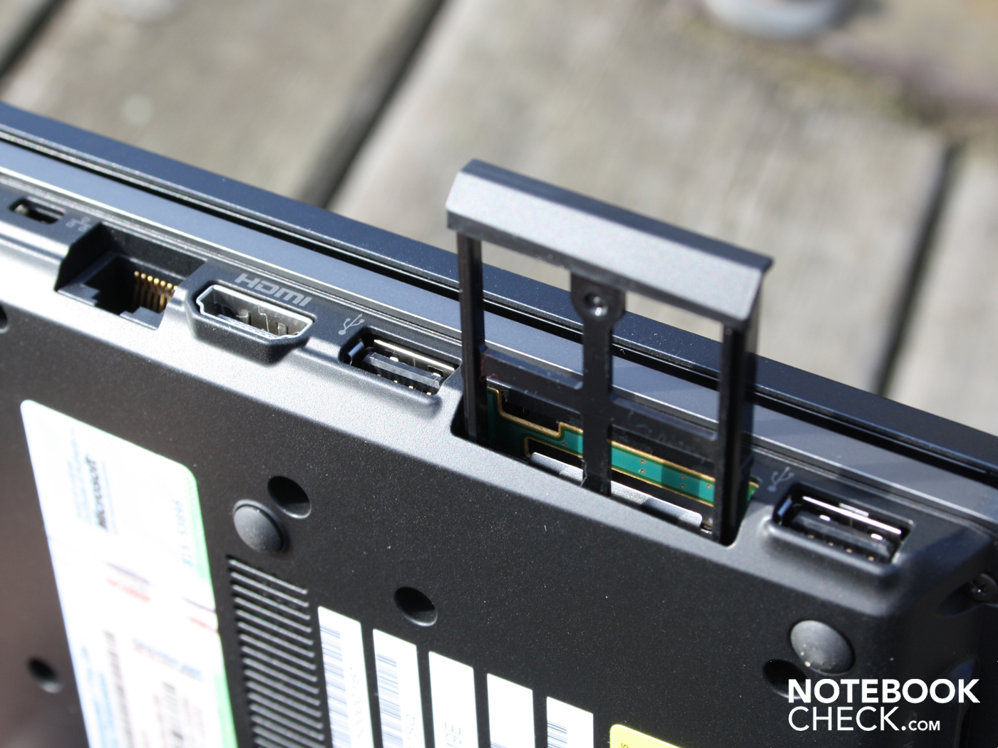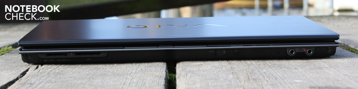 Alle Anschlüsse befinden sich Rechts, Links oder an der Front. Die Rückseite hat auf Grund des tief sitzenden Deckels keine Ports. Der VGA-Anschluss sitzt rechts an der Lade des DVD-Laufwerks. Ein großer VGA-Stecker kann die Öffnung aber nicht behindern, Sony hat hier auf den Millimeter genau gearbeitet. Einen FireWire (i.LINK) Port gibt es nicht, der könnte aber per ExpressCard34 nachgerüstet werden, gleiches gilt für USB 3.0.