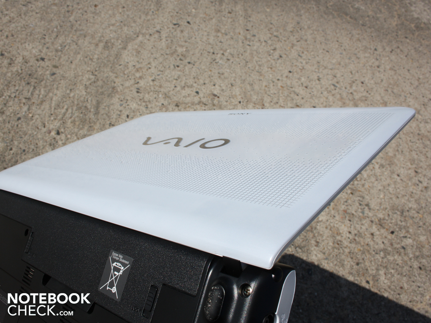 Die Handauflage überzeugt uns durch eine hohe Festigkeit und lässt sich an keiner Stelle eindellen. Dies gilt auch für das Touchpad. Die Flächen der Bodenplatte und des Bereiches über den Tasten sitzen sehr fest und biegen an keiner Stelle ein. Der Deckel ist angemessen steif. An den Ecken angefasst können wir selbigen allerdings um einige Grad verbiegen. Was uns missfällt ist die locker aufliegende Rahmung des TFT-Panels. Speziell die untere Leiste mit dem Sony-Schriftzug lässt sich mit dem Fingernagel soweit abheben, dass ein kleiner Finger dahinter passt.