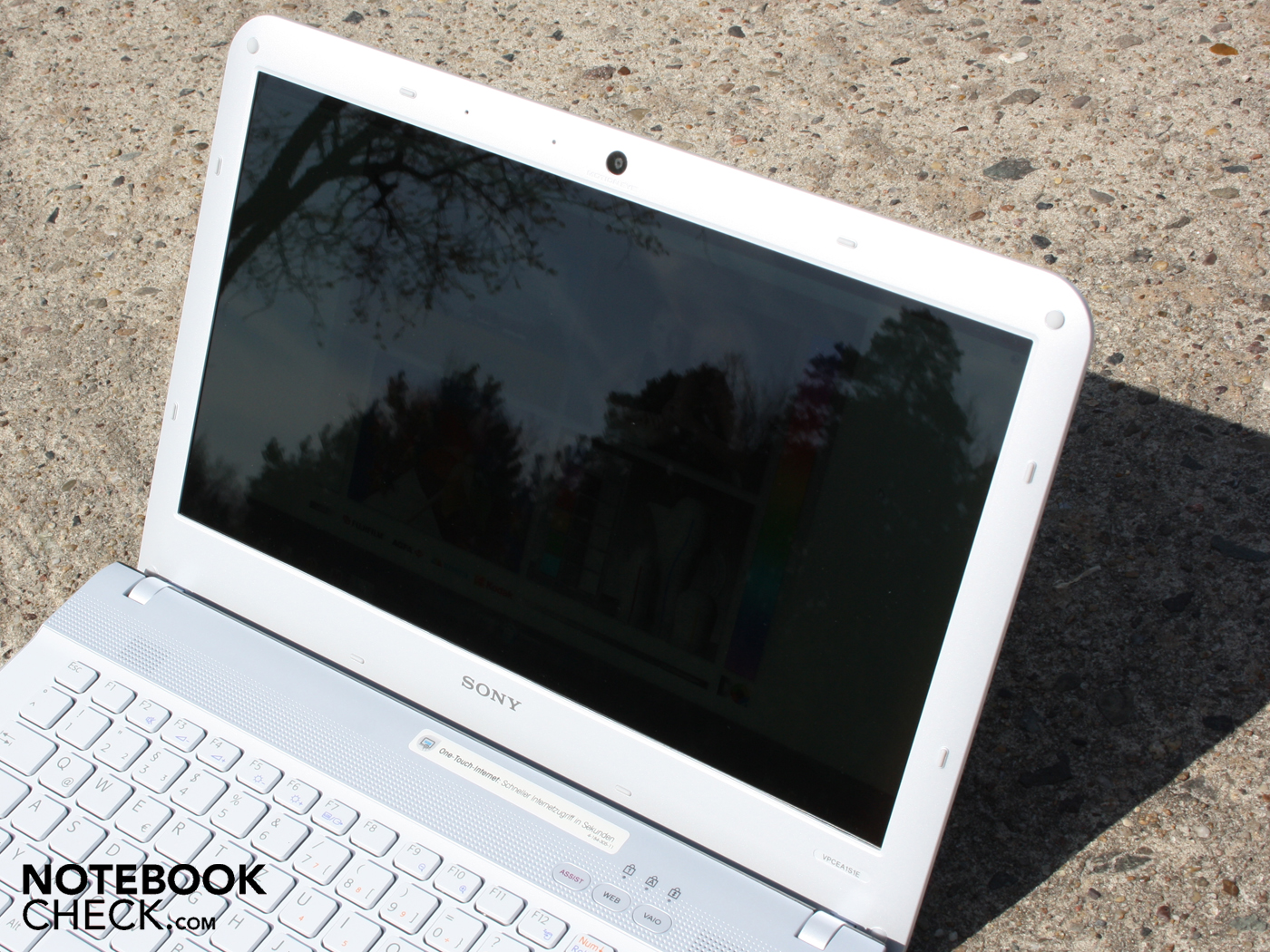 Das nicht entspiegelte Display-Panel kann uns weder mit Kontrasten noch mit einer besonders hohen Helligkeit überzeugen. Sony verbaut eine 14.1-Zoll Anzeige (35.5 cm), die in 1.600 x 900 Pixeln auflöst (16:9). Die WXGA++ Auflösung ist in Mainstream Formfaktoren unüblich aber passend für den Einsatzweck als mobiler Office-Begleiter oder Unterhalter.