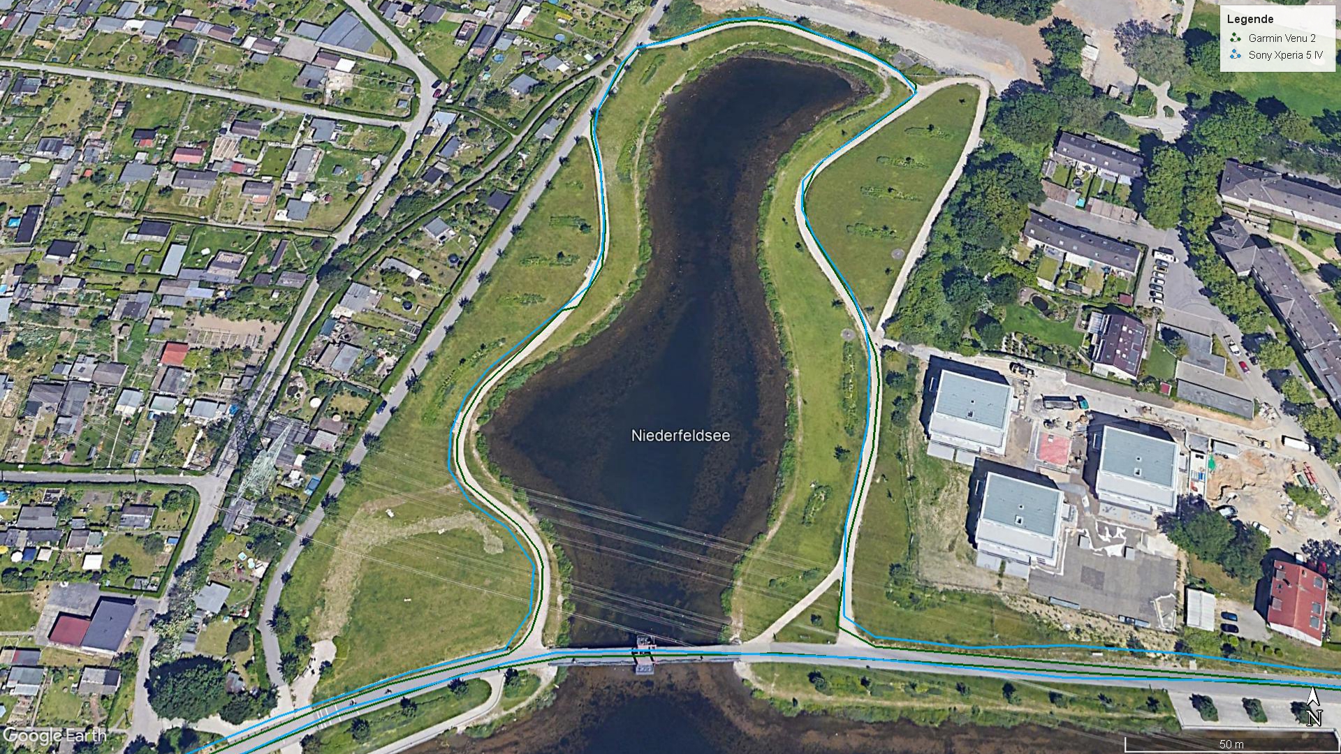 Wir haben das Xperia 5 IV zusammen mit unserem Referenzgerät, der Garmin Venu 2, auf eine Radtour geschickt. Die Aufzeichnung des Sony überzeugt, alle Abbiegungen werden korrekt dargestellt, auch Radien zeichnet das Smartphone akkurat auf. In Gebäuden dauert es allerdings etwas länger, bis das Smartphone eine Satellitenverbindung hergestellt hat.