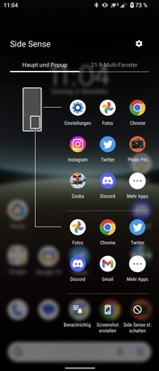 "Side Sense" nennt der Hersteller die Möglichkeit, eine App in einem Pop-up-Fenster vor einer anderen zu öffnen. Außerdem ist es möglich, zwei Apps gleichzeitig in Multifenstern zu öffnen, die Größe ist variabel anpassbar. Der Zugriff auf die Funktionen ist jederzeit über einen einen eingeblendeten Balken möglich.