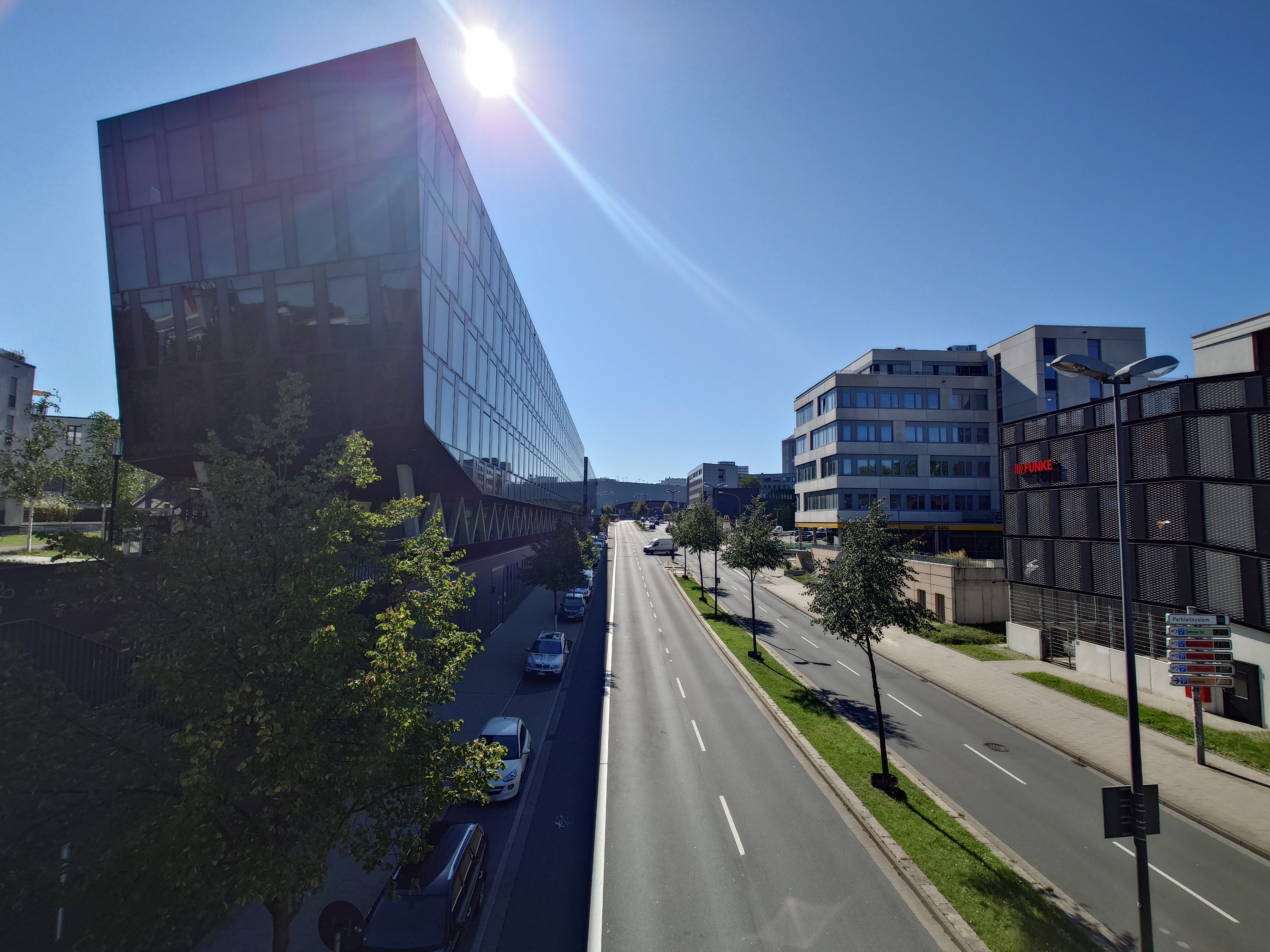 Im Test liefert die Hauptkamera eine sehr gute Bildqualität ab. Bei Tageslicht sind die Fotos schön scharf und arbeiten feine Details auch in dunkleren Motivbereichen noch gut sichtbar heraus. Die Bilder zeichnen sich außerdem durch eine angenehm natürliche Farbgebung aus, die lange nicht so kräftig ist wie bei vielen Konkurrenzmodellen, etwa von Samsung.