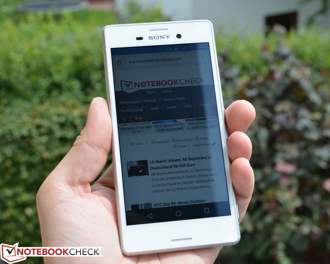 Beim Außengebrauch kommt dem Smartphone die hohe Helligkeit zugute. Da jedoch wie üblich eine stark spiegelnde Displayoberfläche zum Einsatz kommt, ist bei direktem Lichteinfall nicht mehr viel vom Bildinhalt zu erkennen.