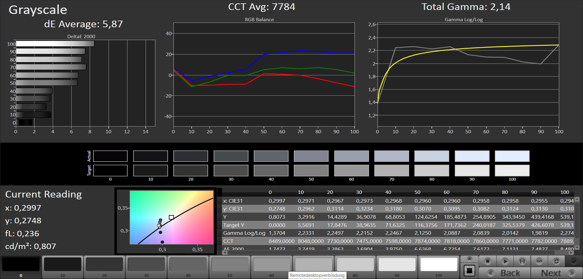 ΔE Greyscale Calman: 5.87 | ∀{0.09-98 Ø5}