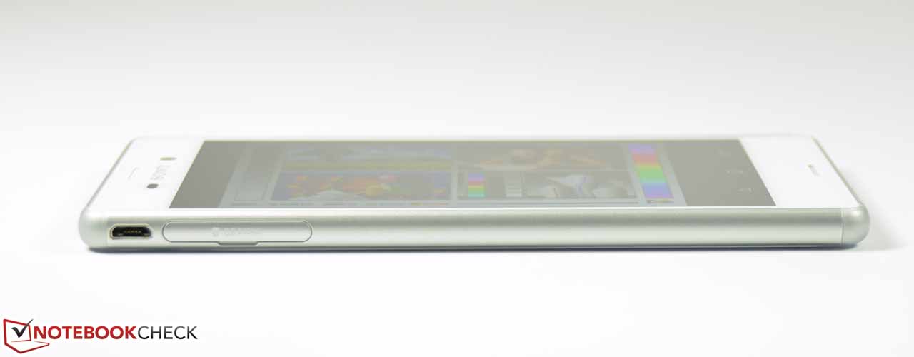 Der kreisrunde Powerknopf und die Lautstärkewippe sowie ein dedizierter Kamera-Auslöser wurden an der rechten Seite des Gehäuses platziert. Die Druckpunkte gehen dabei in Ordnung und sind nur teilweise leicht schwammig geraten. Der gekapselte Micro-USB-2.0- sowie der microSD-Port befinden sich an der linken Flanke, letzterer Port unter einer schützenden Klappe. Der Einschub für die Nano-SIM-Karte sitzt rechts und ist ebenfalls mit einer speziellen Schutzklappe versehen. Die gekapselte 3,5-mm-Klinke wurde günstig für den Einsatz in der Hosentasche an der Oberkante des Xperia M4 Aqua positioniert. Der Mono-Lautsprecher findet sich wie schon beim Vorgänger Xperia M2 Aqua an der Unterseite des Gehäuses.
