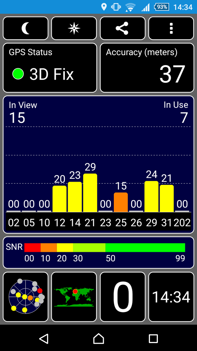 Die Ortung mit der App GPS Test gelingt via GPS- und GLONASS-Satelliten innen wie außen zwar recht flott, die Genauigkeit ist aber nicht gelungen.