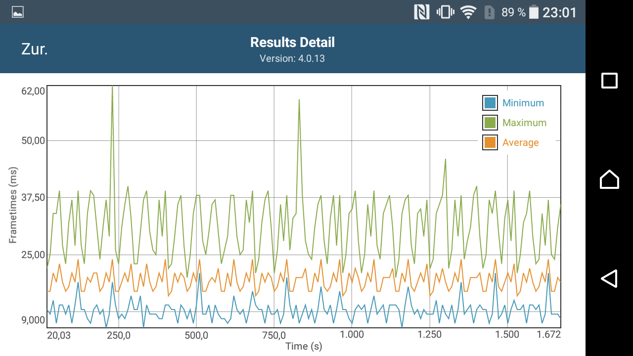 Einen Vorteil des Mainstream-SoCs sehen wir bei der dauerhaften Auslastung, die wir mit den beiden Akkutests von GFXBench simulieren. Während die Leistung bei dem Vorgänger nach einiger Zeit noch einbrach, bleibt sie beim Xperia X Compact nahezu konstant. Das ist auch ein Vorteil gegenüber dem dünneren Bruder Xperia X, bei dem das SoC die Leistung nach einigen Durchgängen temperaturbedingt reduzieren muss.