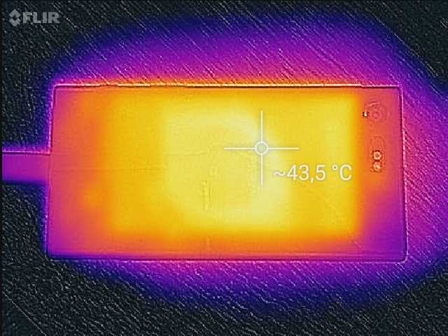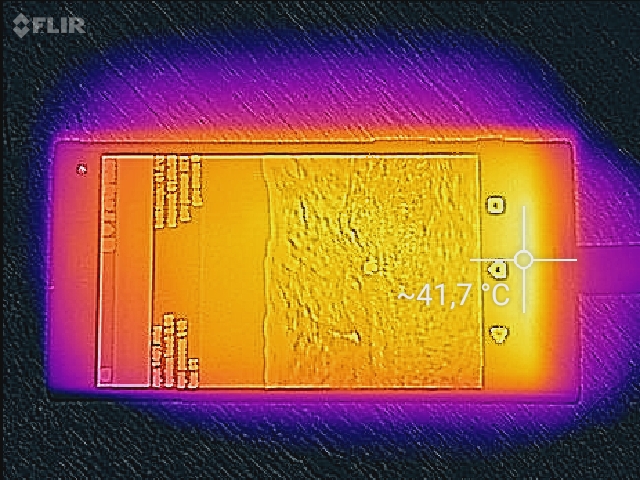 Bereits bei wenig Last wärmt sich der untere Bereich des Smartphones spürbar auf und die durchschnittlichen Temperaturen sind mit 35 °C (Vorderseite) bzw. 33 °C (Rückseite) recht hoch. Unter Last liegen die Durchschnittswerte dann bei rund 40 °C. Das ist zwar spürbar, in der Praxis aber noch nicht unangenehm.