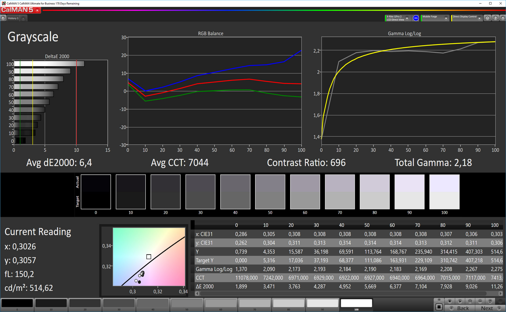 ΔE Greyscale Calman: 6.4 | ∀{0.09-98 Ø5}
