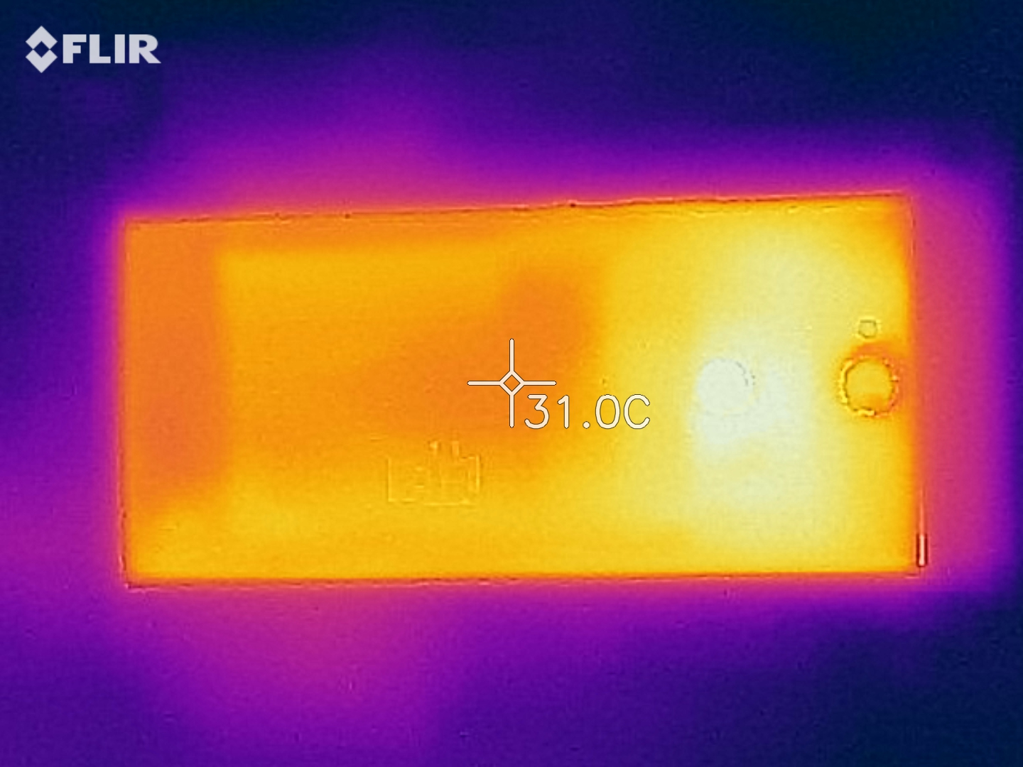 (+) Ohne Last messen wir eine durchschnittliche Temperatur von 29 °C auf der Oberseite. Der Klassendurchschnitt erreicht 32.9 °C.