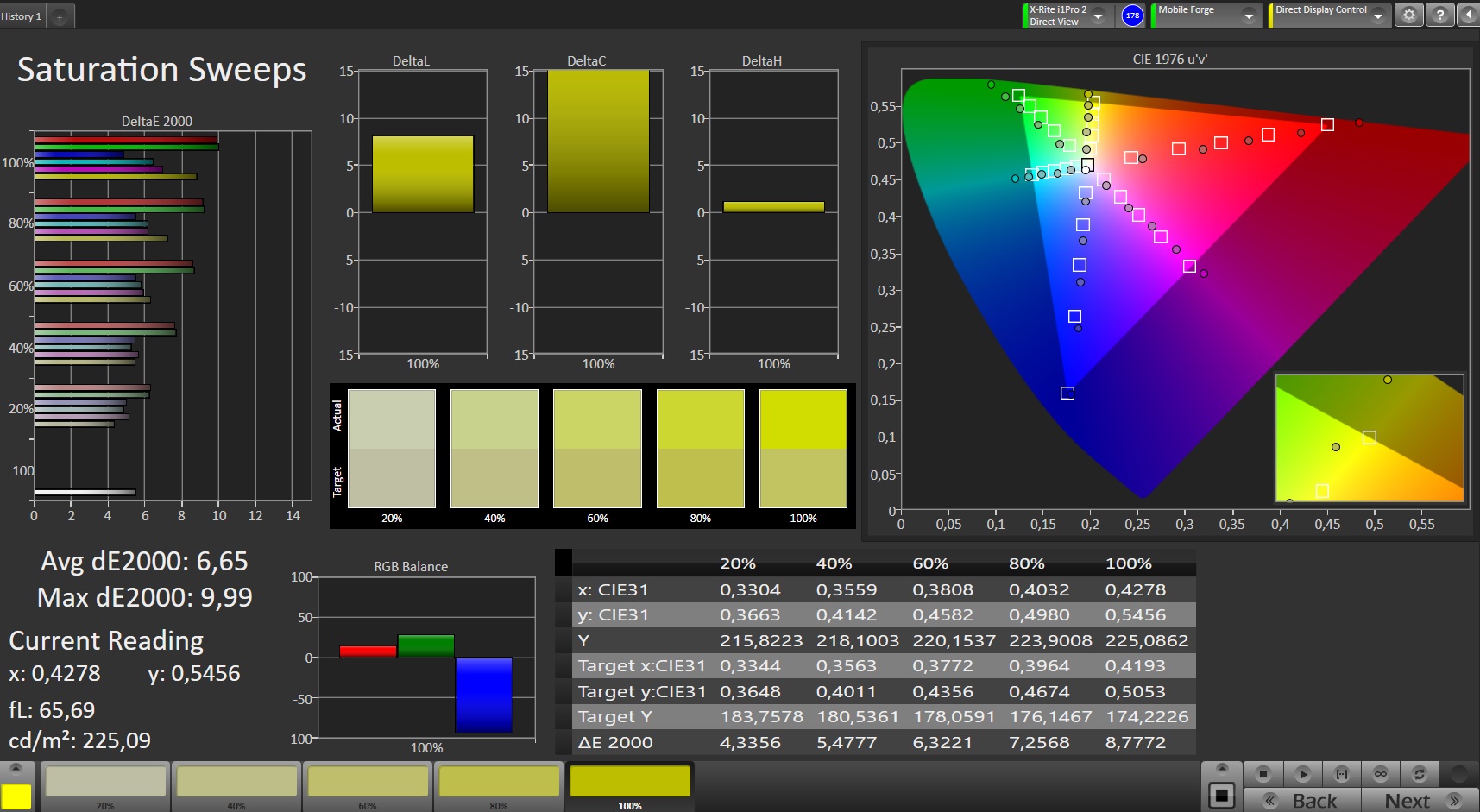 | Delta E Colorchecker * | 6.6 | 1.6 76% | 3.2 52% | 5.4 18% | 1.2 82% |