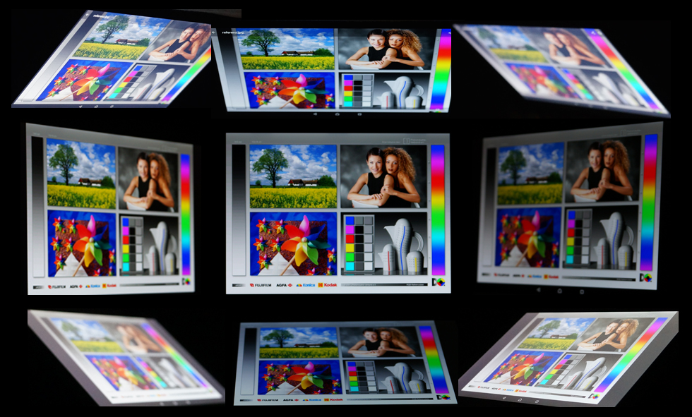 Sehr hoch fällt die Blickwinkelstabilität aus. Selbst bei sehr flachen Winkeln verändern sich die Farben nicht. Die Helligkeit geht aber ab etwa 45 Grad sichtbar zurück.