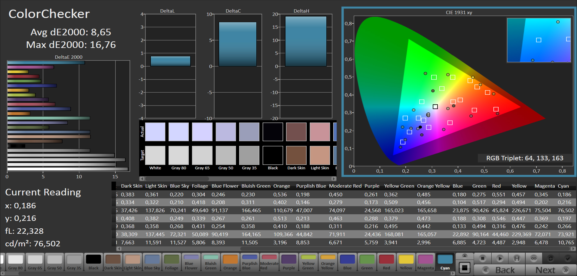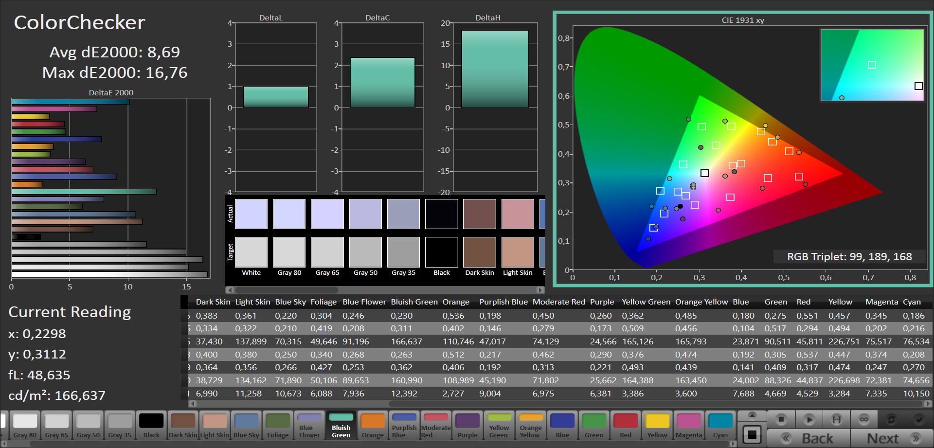 ΔE ColorChecker Calman: 8.69 | ∀{0.5-29.43 Ø4.78}