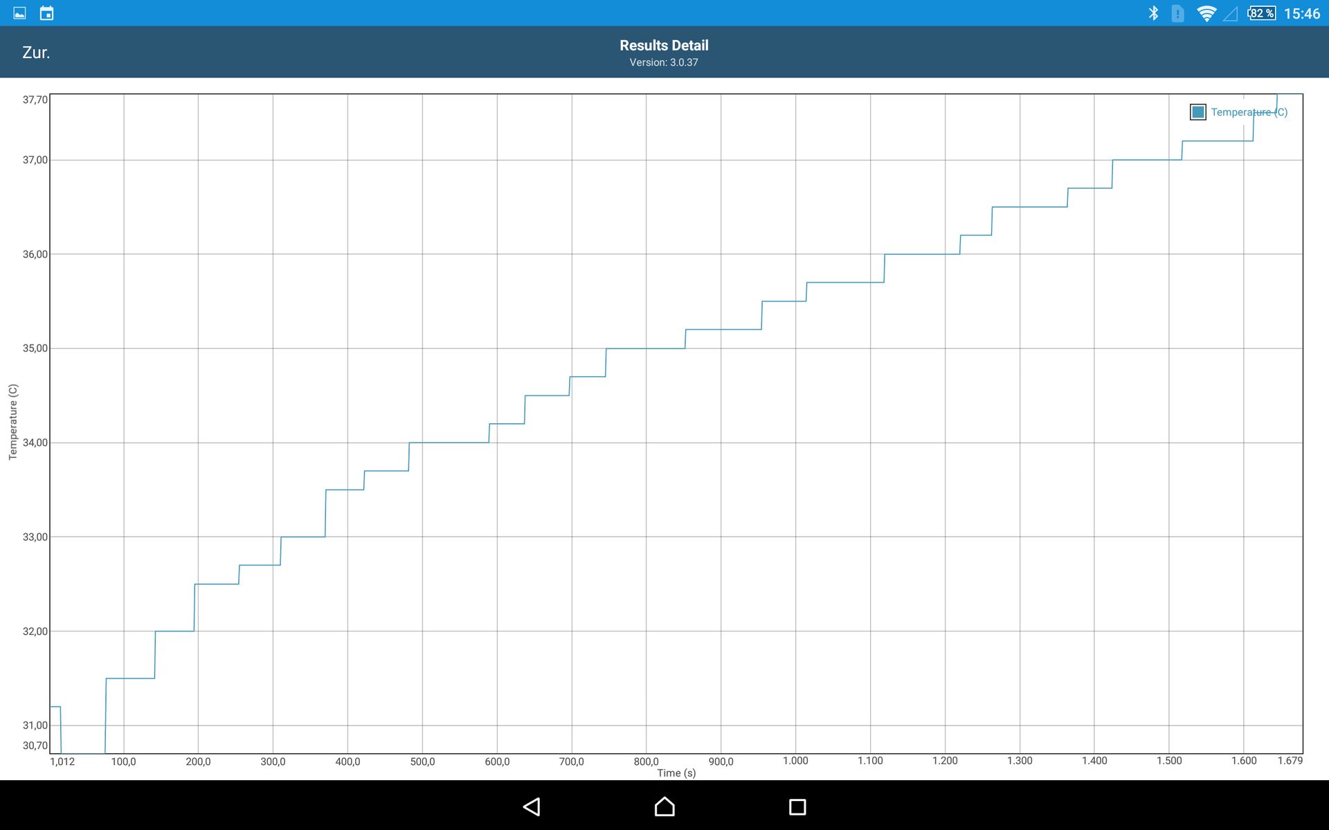 Kommen wir an dieser Stelle erneut auf das bereits erwähnte Throttling zu sprechen. Um dies zu überprüfen, nutzen wir den Akkutest des GFX Benchmark 3.0. Dabei werden in einer Schleife 30 mal hintereinander der T-Rex-Test durchgeführt und sowohl die Temperaturentwicklung als auch die Leistung protokolliert. Die Screenshots zeigen deutlich, dass die Leistung bereits nach wenigen Durchläufen zu schwanken beginnt, bevor sie gegen Ende des Tests dramatisch einbricht. Parallel dazu steigt die Temperatur kontinuierlich an. Letztlich geht dieses Phänomen zulasten der Gesamtleistung und dürfte sich vor allem bei anspruchsvollen Spielen in dem einen oder anderen unnötigen Ruckler auswirken. Ganz so schlecht wie beim Smartphone-Flaggschiff von Sony, dem Z3+, wirken sich die Temperaturprobleme beim Z4 Tablet allerdings nicht aus. Eine Abwertung im Temperatur-Kapitel nehmen wir dennoch vor.