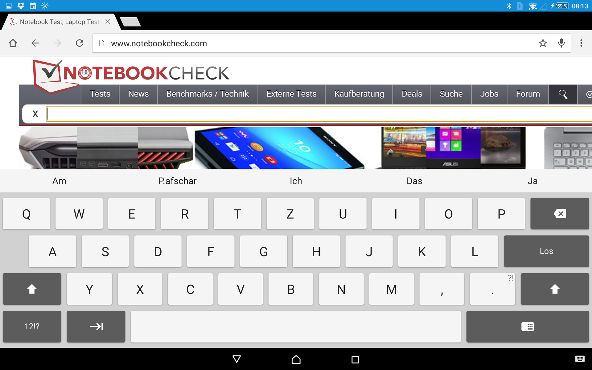 In Sachen Touchscreen hat sich gegenüber dem Vorgänger ebenfalls nichts getan. Die berührungsempfindliche Eingabefläche misst nach wie vor 10,1 Zoll in der Diagonalen, erkennt bis zu zehn Finger gleichzeitig und erledigt ihre Aufgabe ohne Fehl und Tadel. Eingaben werden nahezu verzögerungsfrei umgesetzt, der Touchscreen arbeitet auch in den äußersten Randbereichen sehr präzise. Das kratzfeste Schutzglas bietet vielleicht die allerbeste Gleitfreudigkeit, ist aber absolut in Ordnung. Ebenso wie Größe und Funktion der virtuellen Tastatur. Sony setzt hier auf ein eigenes Layout, statt die Android-Lollipop-Tastatur zu verwenden. Wir sehen da keine Nachteile. Ganz im Gegenteil: Die großen Tasten erlauben eine recht hohe Tippgeschwindigkeit. Obendrein sind die vorgeschlagenen Wörter, die über der Tastatur eingeblendet werden, oft hilfreich.