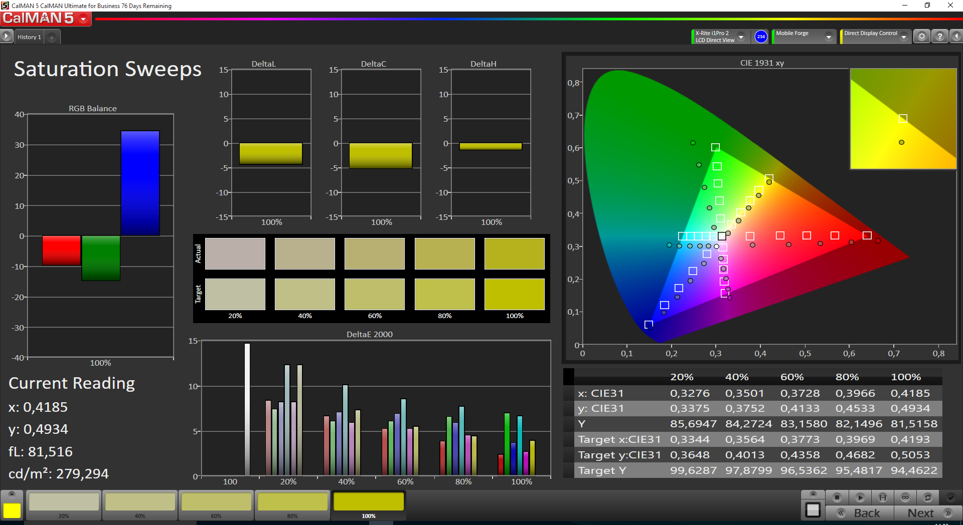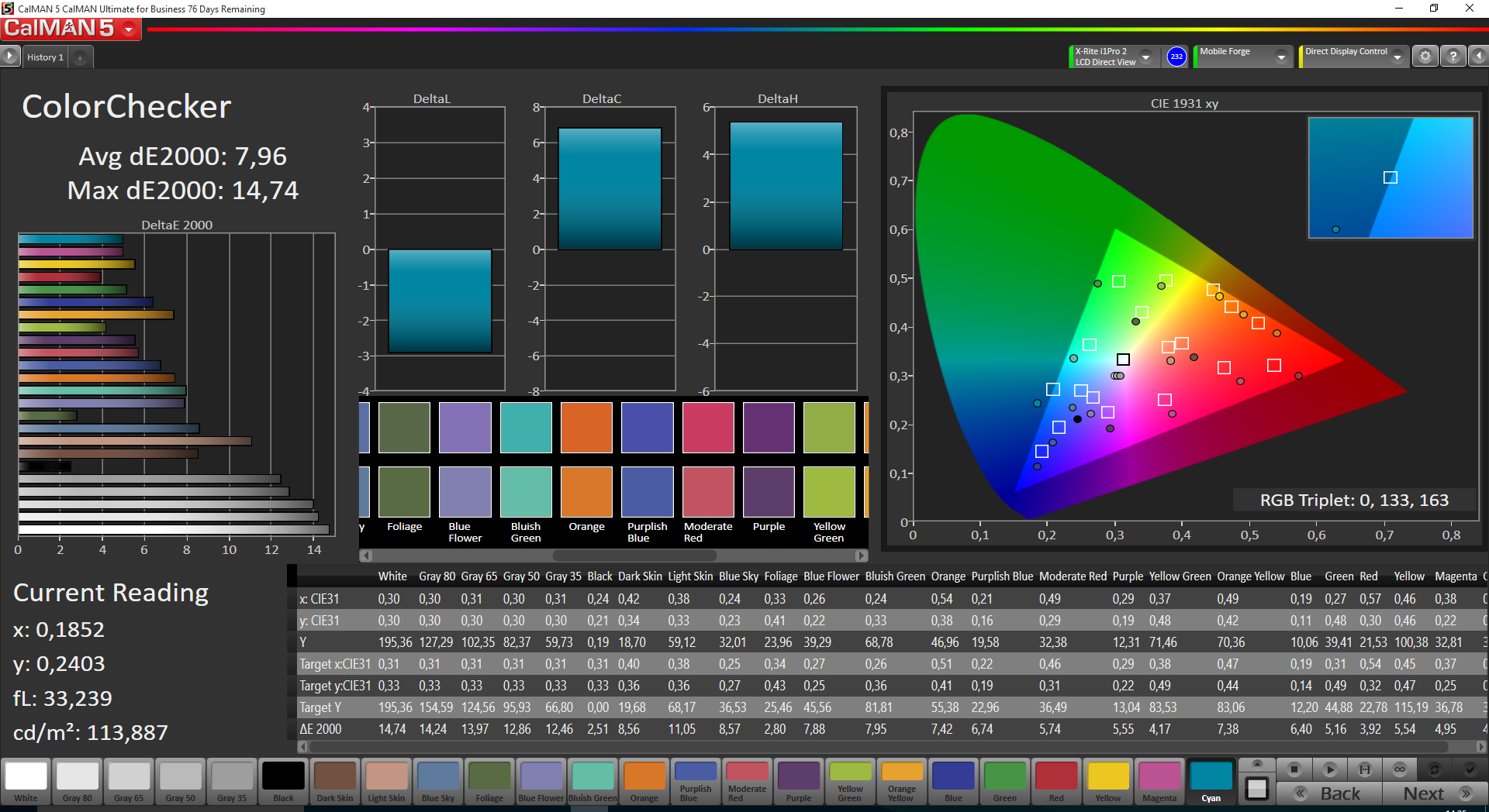 ΔE ColorChecker Calman: 7.96 | ∀{0.5-29.43 Ø4.78}