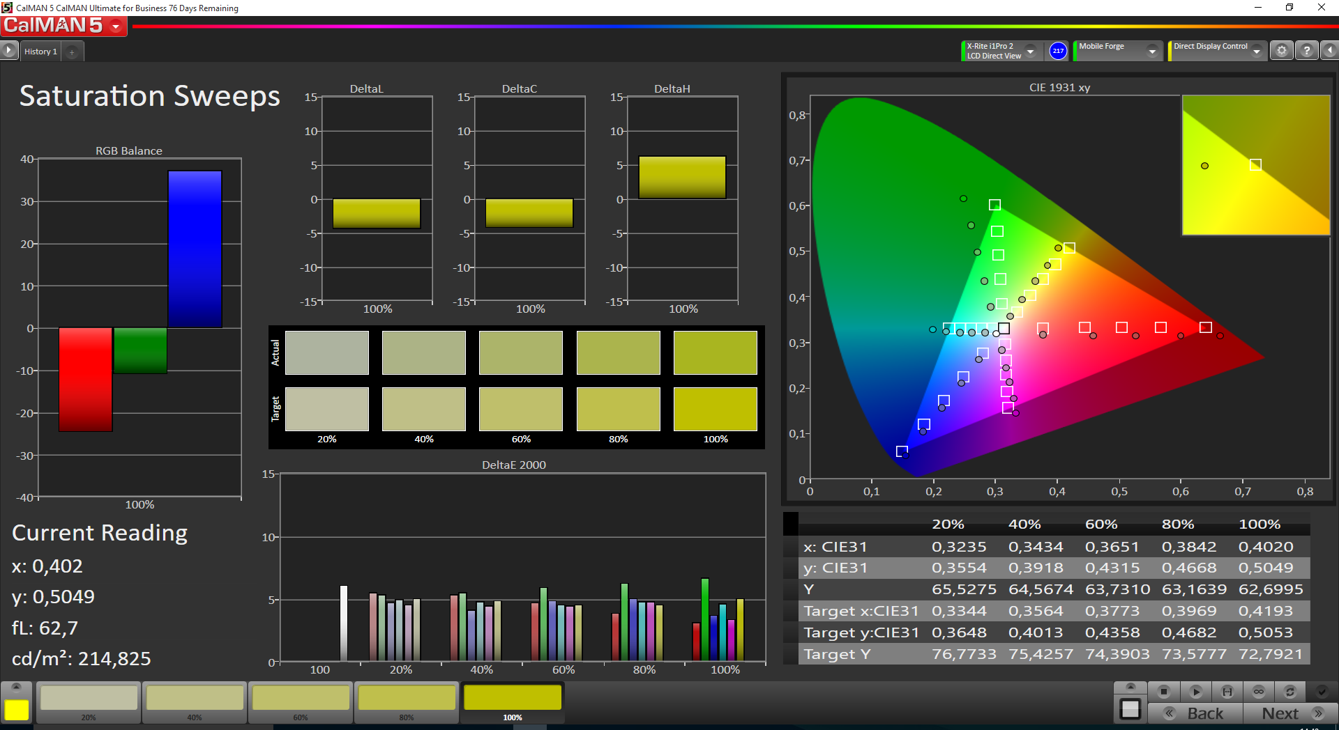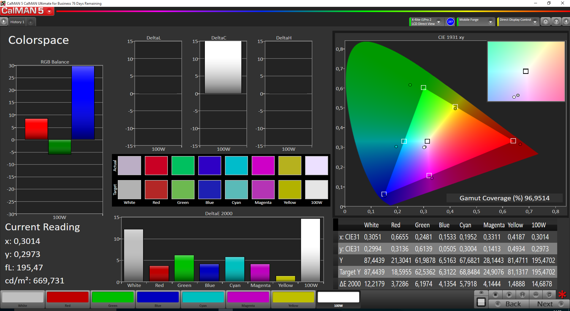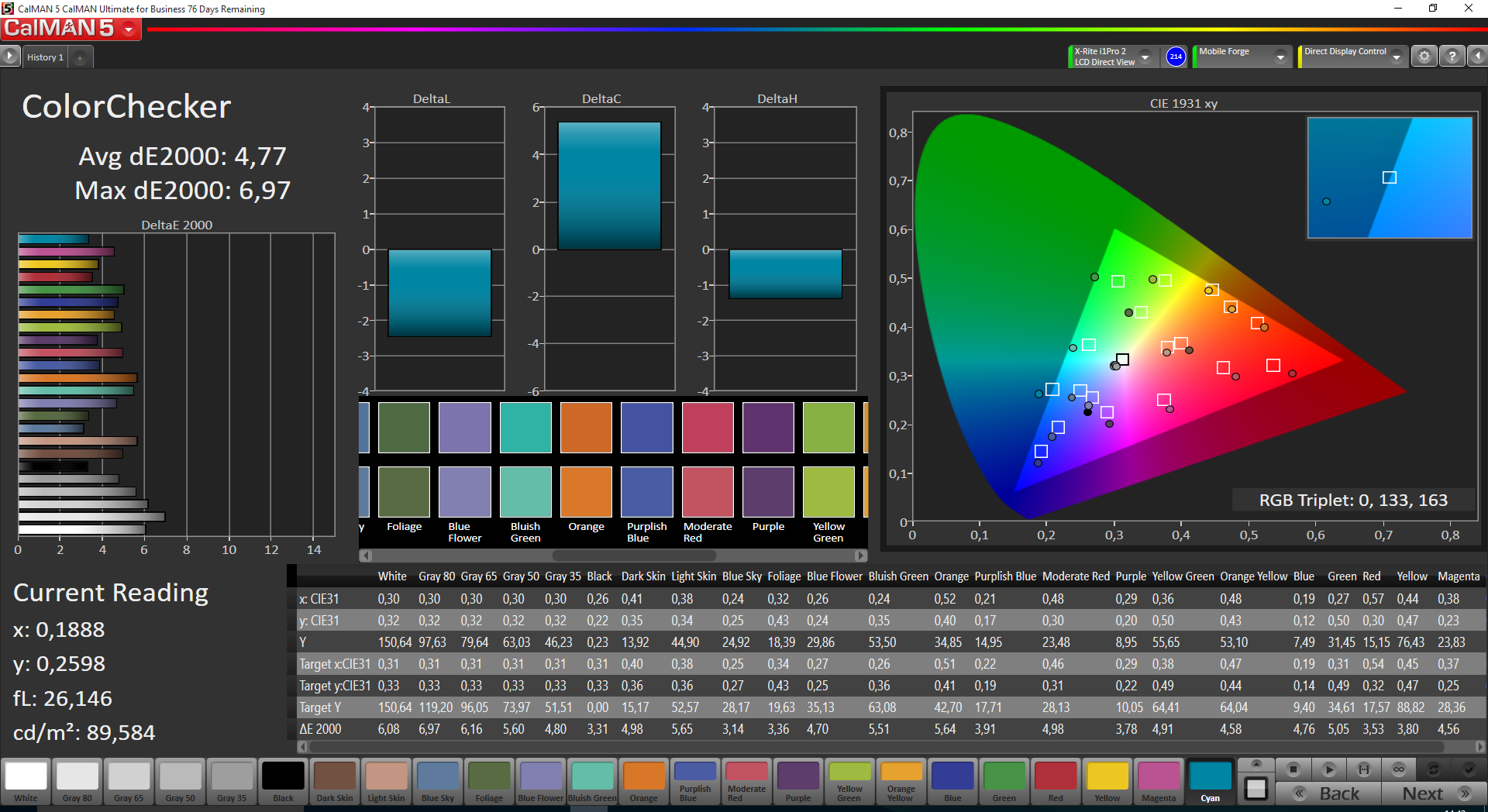 | Delta E Colorchecker * | 7.96 | 3.55 55% | 9.24 -16% | 4.95 38% | 2.33 71% |