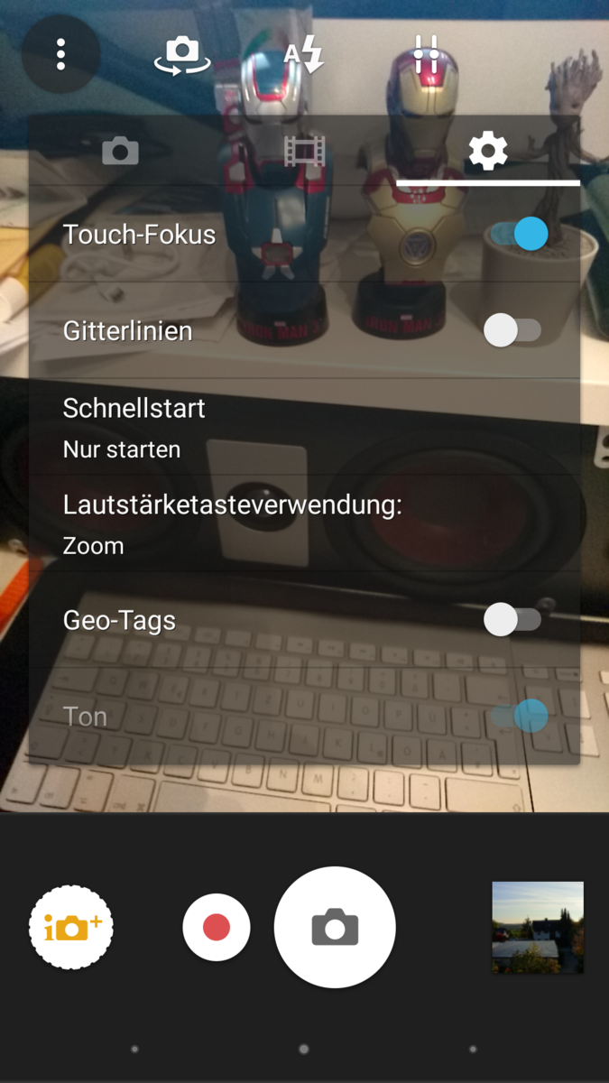 Sony nutzt in der aktuellen Xperia Serie sowohl beim Z5 als auch bei den Schwestermodellen Z5 Compact und Z5 Premium identische Kameramodule. Dafür beansprucht der japanische Hersteller für sich die weltweit beste Kamera in einem Smartphone. Die Hauptkamera nutzt den 1/2,3 Zoll großen 23-Megapixel-Sensor Sony Exmor RS und ein 24-mm-Weitwinkel-G-Objektiv. Die integrierte Bildverarbeitungsengine BIONZ soll Farben verbessern und Verpixelung und Bildrauschen gering halten. Der hybride Autofokus (0,03 s) arbeitet im Test dann auch sehr schnell, stellt aber nur bei guter Motivausleuchtung oder Zuschaltung des LED-Blitzes auch präzise scharf. Auch aus dem Standby ist die Kamera über den Auslöser flott einsatzbereit. Ein maximales ISO von 12800 soll auch bei schwachem Licht gute Bilder schießen. Das gelingt im Praxistest, wenn auch das Bildrauschen dabei sichtbar zunimmt. Der digitale 8-fach-Zoom ist bis Stufe 5 fast ohne Verluste brauchbar. Unser Qualitätsvergleich mit einigen Konkurrenten und einer digitalen Spiegelreflexkamera attestiert dem Xperia Z5 sehr gute Bilder bei ordentlicher Motivausleuchtung. Videos werden in UltraHD mit 3.840 x 2.160 Pixeln bei 30 fps aufgenommen. Die Überhitzungsgefahr des Kameramoduls, vor der beim Vorgänger noch beim Öffnen der Kamera-App gewarnt wurde, scheint wohl gebannt. Im Test war davon nichts zu bemerken.