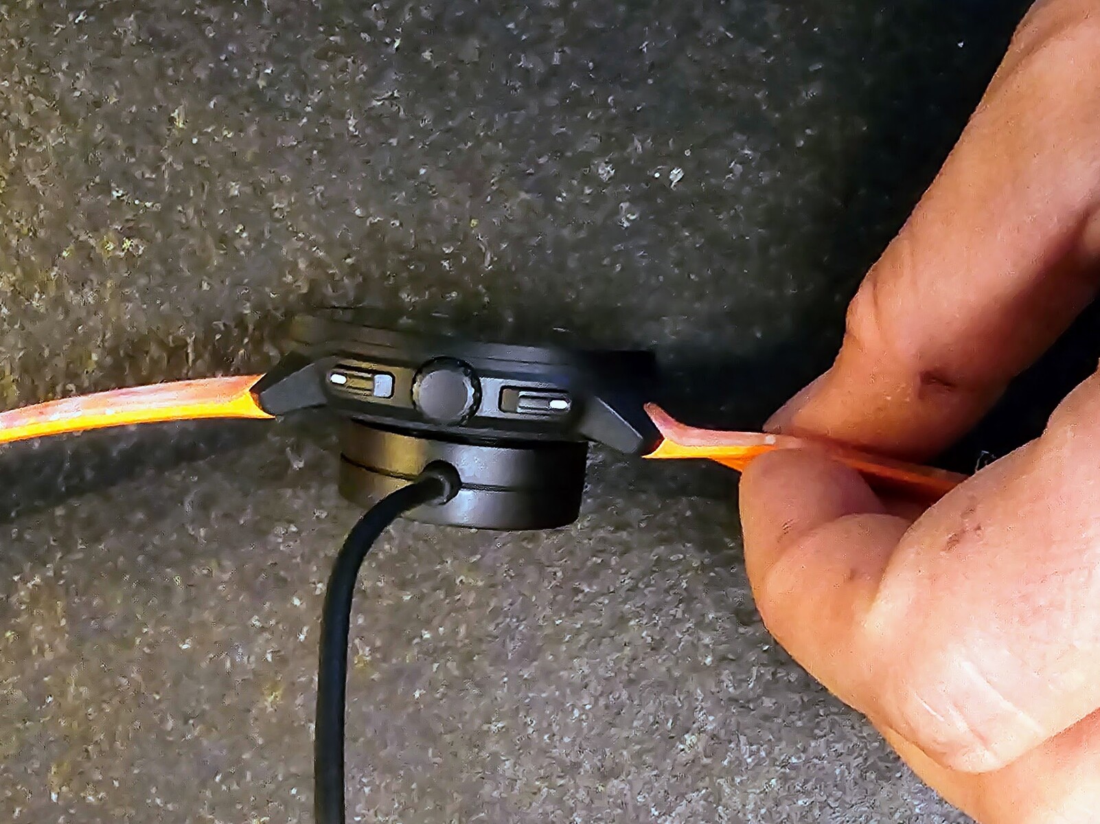 Das Band der Smartwatch besteht aus Silikon und hat eine Breite von 22 Millimetern. Der Verschluss entspricht zudem dem verbreiteten Standard, damit steht eine große Vielfalt an Ersatzbändern zur Wahl. Die Federstangen des Originalbandes haben kleine Hebel und können werkzeuglos bedient werden. Neben der regulären Schließe hat das Band der Race S einen verstellbaren Dorn. Damit kann das Bandende der Uhr fixiert werden.