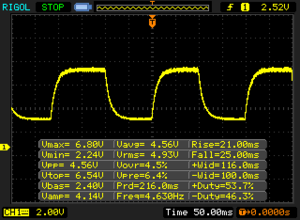 | 34 ms ... steigend ↗ und fallend ↘ kombiniert | ↗ 19 ms steigend | |