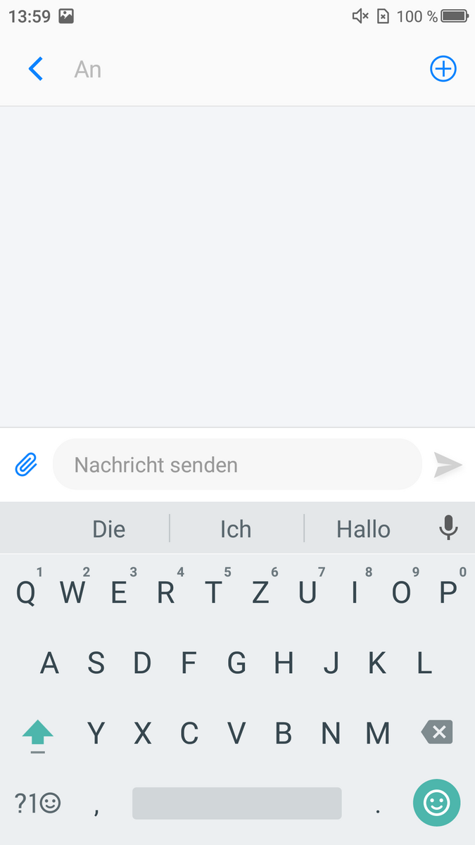 Die Standard-Android-Tastatur "GBoard" des Neffos N1 lässt sich gut bedienen. Eingaben werden direkt angenommen und mit einem leichten Vibrieren quittiert. Dabei lässt sich das Keyboard im Fenster für SMS-Nachrichten nur im Hochformat benutzen, während es z. B. im Browser auch im Querformat verfügbar ist. Der Multi-Touchscreen leistet sich keine Auffälligkeiten, bietet allerdings ein klein wenig zu viel Widerstand für darüber gleitende Finger.