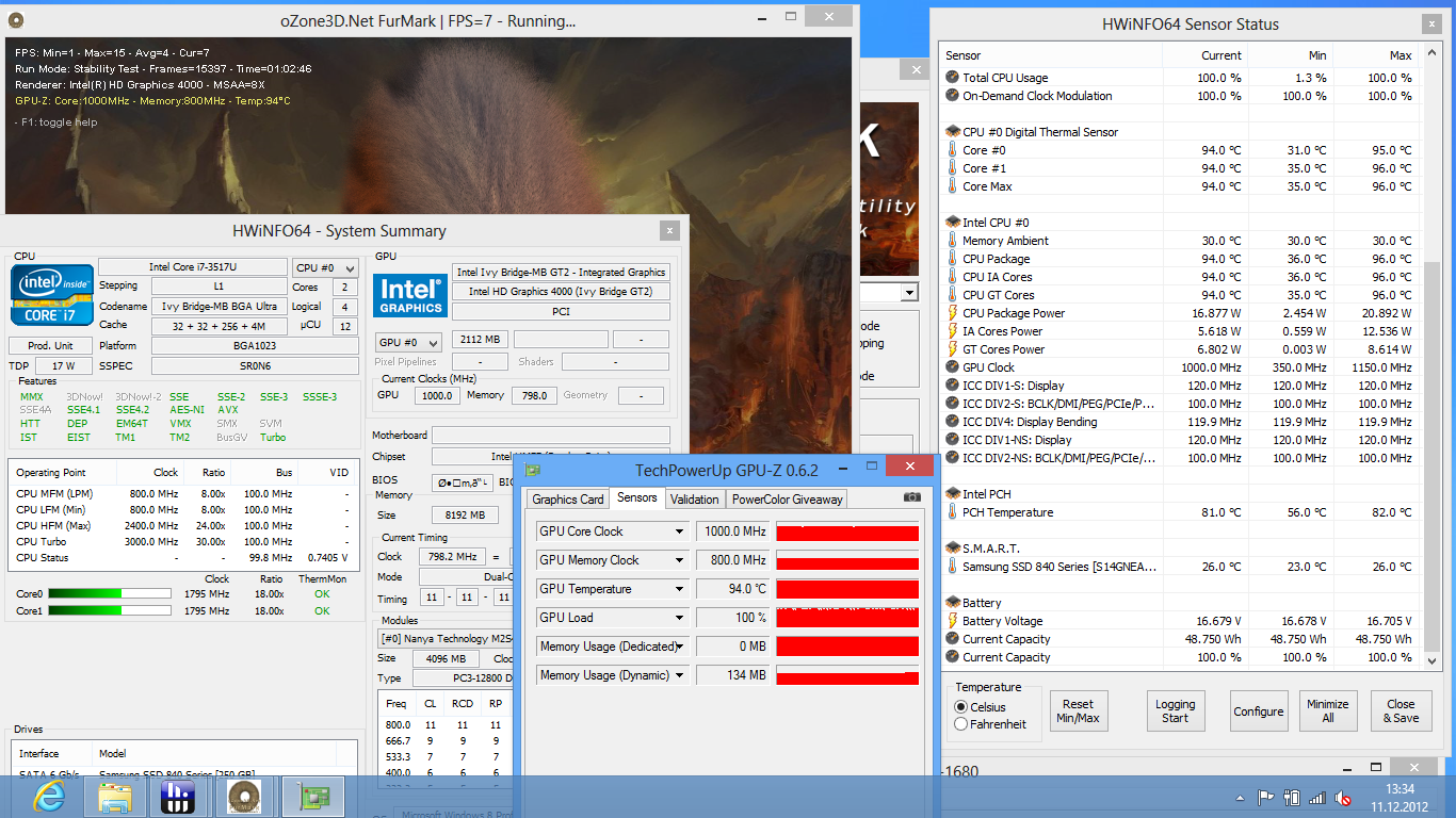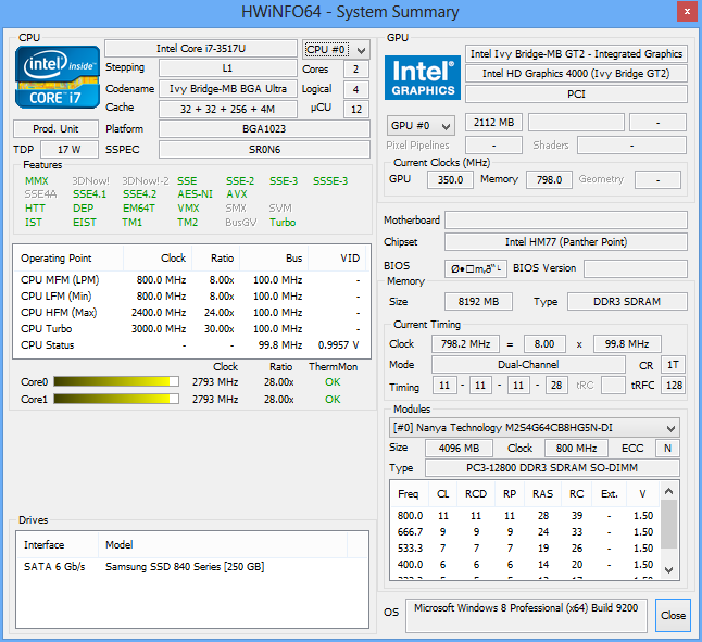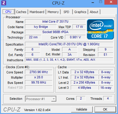 Der Standardtakt des Intel Core i7 3517U beträgt 1,9 GHz, mit Turbo Boost können jedoch bei einem Kern bis zu 3 GHz und bei zwei Kernen 2,8 GHz erreicht werden. Damit ist das Ultrabook fast allen Szenarien gut gewachsen. Nur bei sehr rechenintensiven Aufgaben, wie beispielsweise einem CAD-Rendering, beginnt das Modula Ultrabook zu schwächeln.