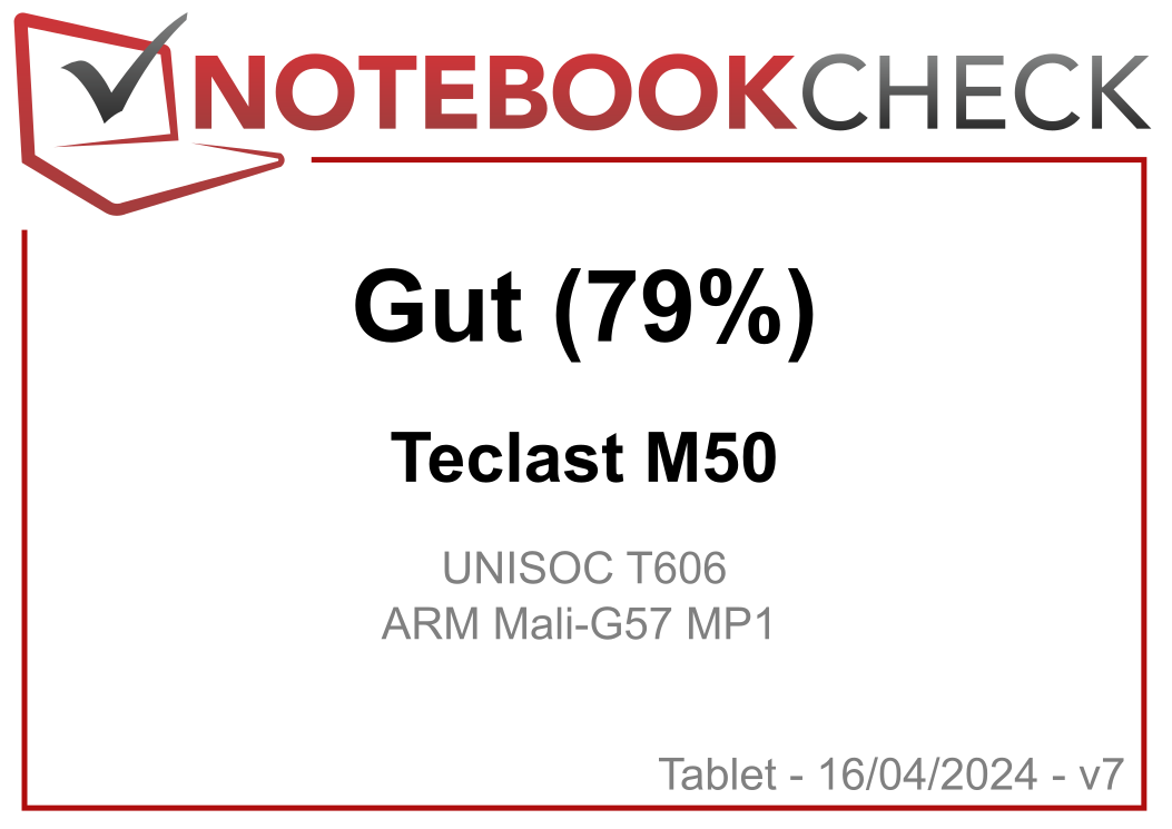 | 79.3 % v7 (old) | 04 / 2024 | Teclast M50 T7200 (T606), Mali-G57 MP1 | 460 g | 128 GB eMMC Flash | 10.10" | 1280x800 | |